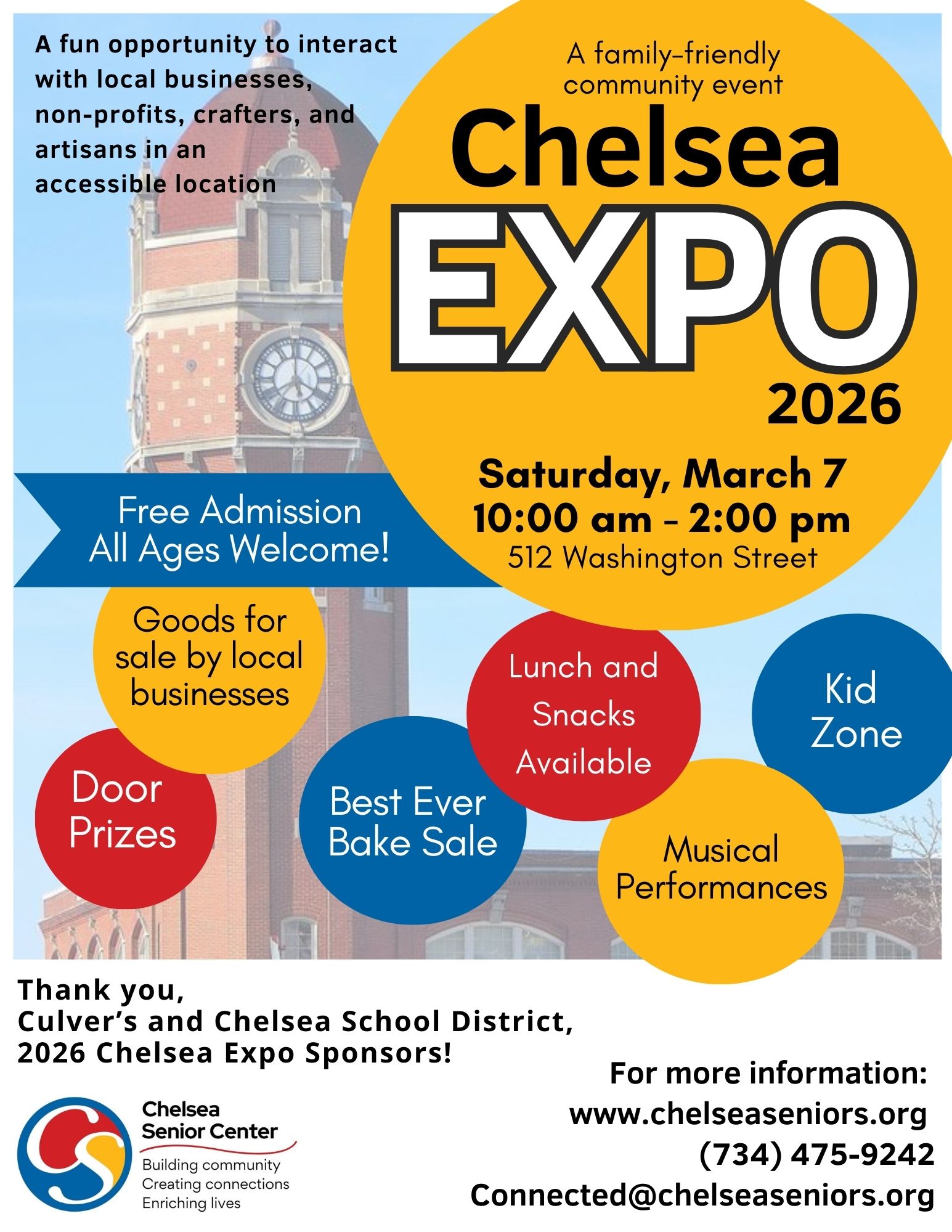Stop by Chelsea EXPO, a free, family-friendly opportunity to interact with local businesses, non-profits, crafters, and artisans. Enjoy music, food, and a kid zone. Admission is free and everyone is welcome.