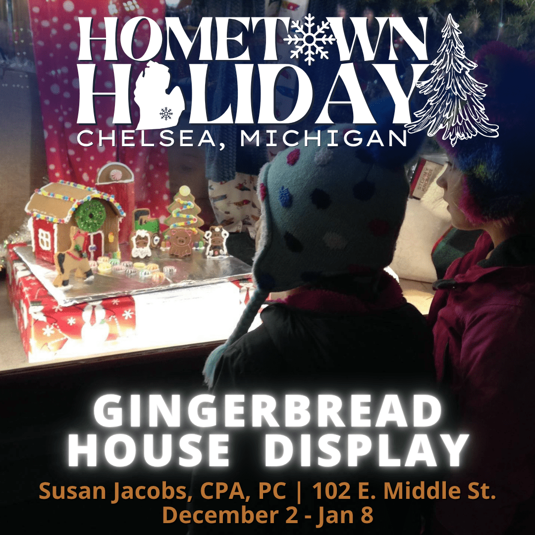 View custom made Gingerbread houses displayed in the windows of Susan Jacobs, CPA, PC from December 2nd through January 8th!