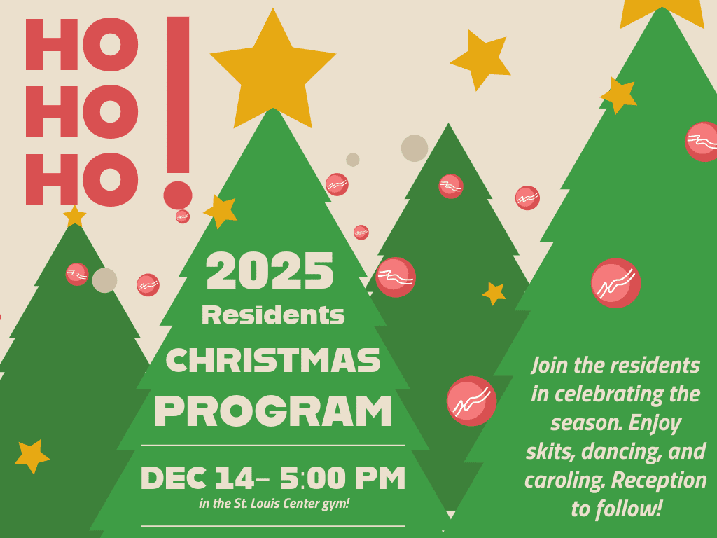 St. Louis Center welcomes Chelsea and the surrounding communities to an evening of Christmas Spirit on Sunday, December 14, 2025. After weeks of hard work and preparation, St. Louis Center residents invite friends and neighbors to join them as they present their 2025 Christmas Program. This annual event is open to anyone interested in attending.