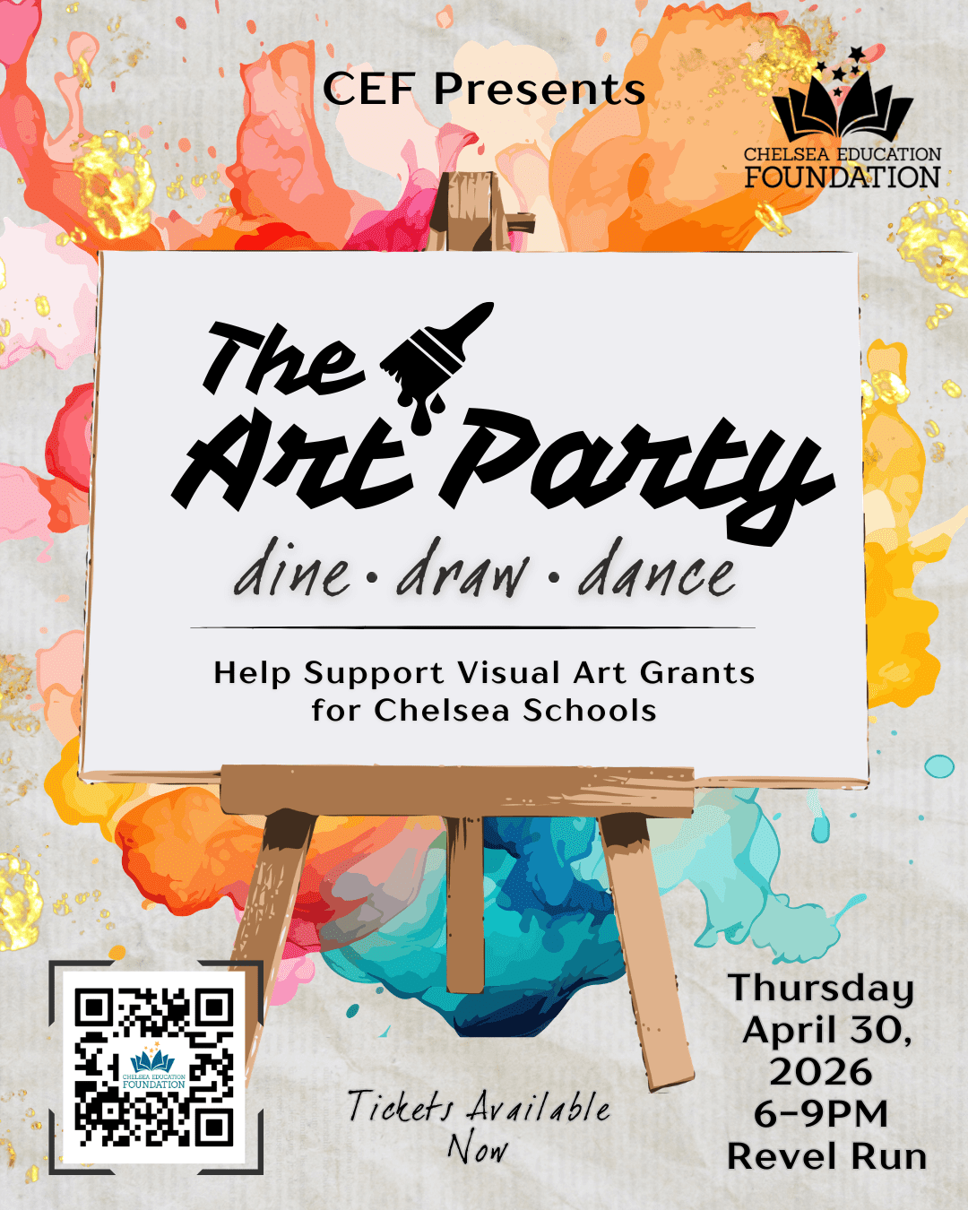✨ Join us for a vibrant evening of art, community, and celebration supporting Chelsea School District visual arts programs funded by Chelsea Education Foundation grants.